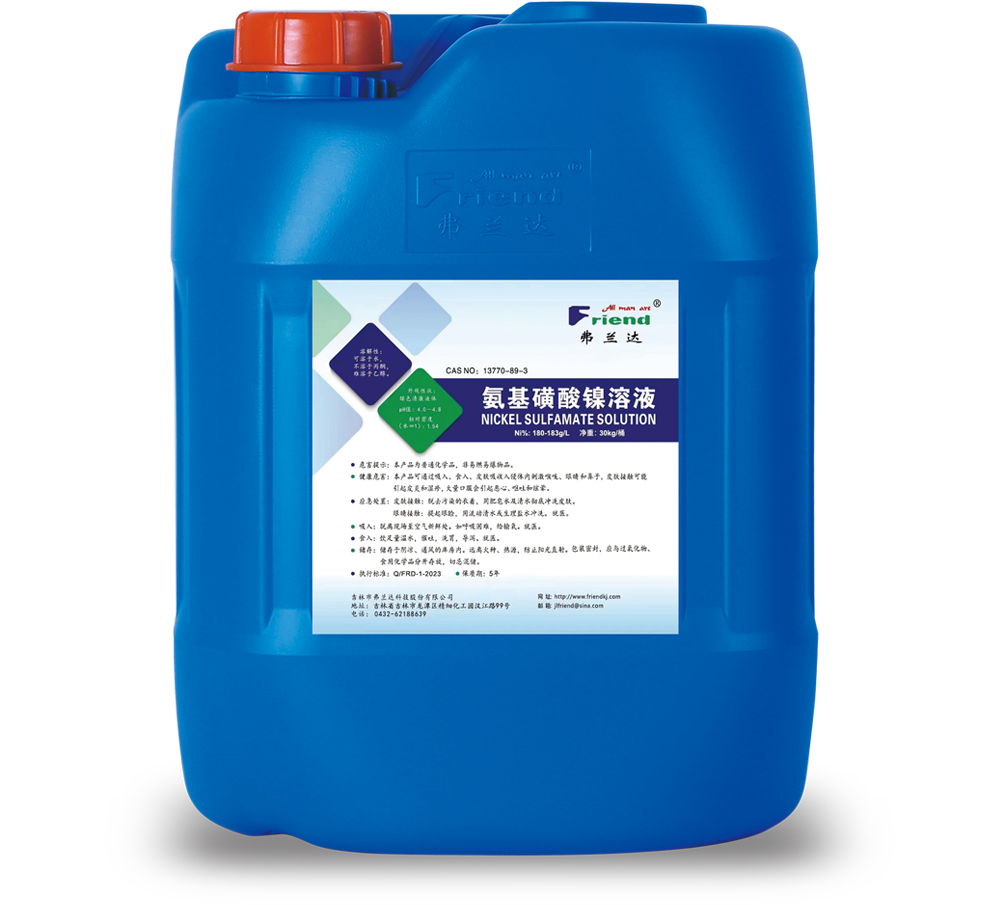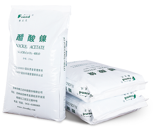 吉林市弗蘭達科技股份有限公司成立于2004年,位于吉林省吉林市龍?zhí)督?jīng)濟開發(fā)區(qū)精細化工園漢江路99號,注冊資本1000萬元,占地2萬平方米。專業(yè)從事醋酸鎳、氨基磺酸鎳、堿式碳酸鎳、氨基磺酸鈷等系列產(chǎn)品的研發(fā)與生產(chǎn)。產(chǎn)品均通過歐盟Reach和Rohs認證,生產(chǎn)制造過程通過了ISO9001質(zhì)量管理和ISO14001環(huán)境管理體系認證,擁有自主進出口經(jīng)營權(quán)。本著追求卓越、回報社會的企業(yè)宗旨,本著誠信擔(dān)當、品質(zhì)卓越、激情創(chuàng)新、和諧共贏的核心價值觀,為客戶提供優(yōu)質(zhì)服務(wù),做行業(yè)知名品牌。產(chǎn)品主要應(yīng)用領(lǐng)域:鋁合金陽極氧化、著色、封閉劑行業(yè);精密電鍍、電子電鍍行業(yè);石油化工、機械行業(yè)的催化劑制造、電鍍主鹽等。
